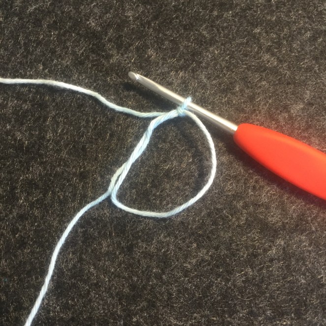 2. 1 lm (räknas inte som maska), 2 fm i alla maskor, stäng med en sm i den första maskan. (12)
