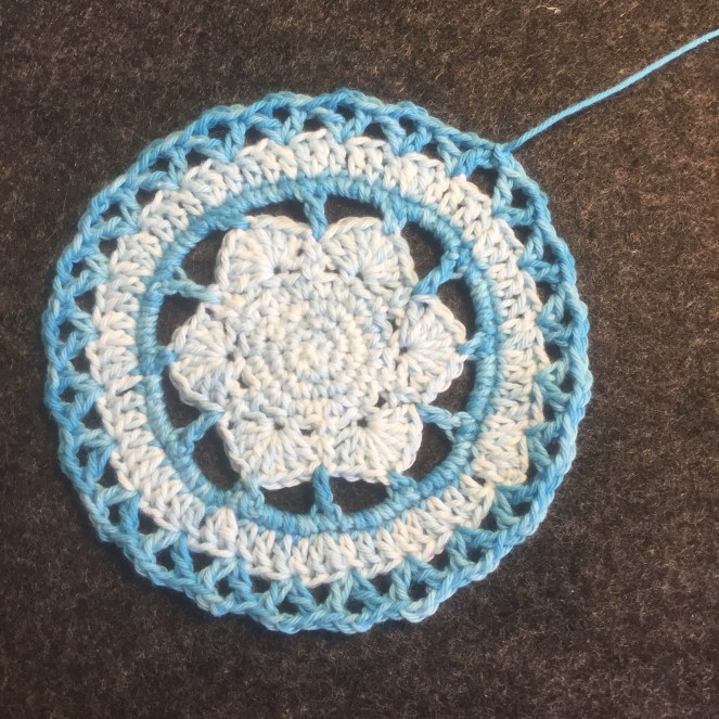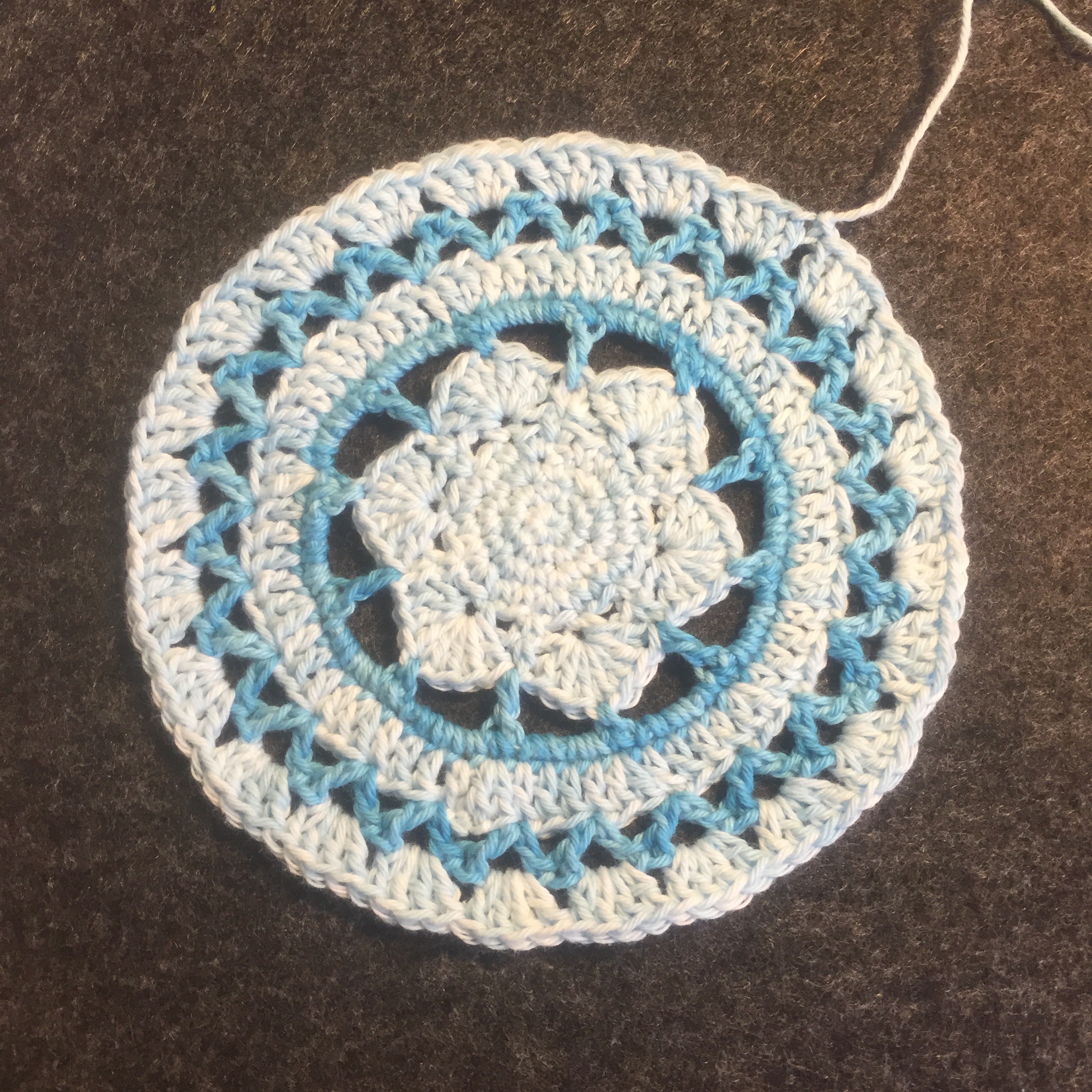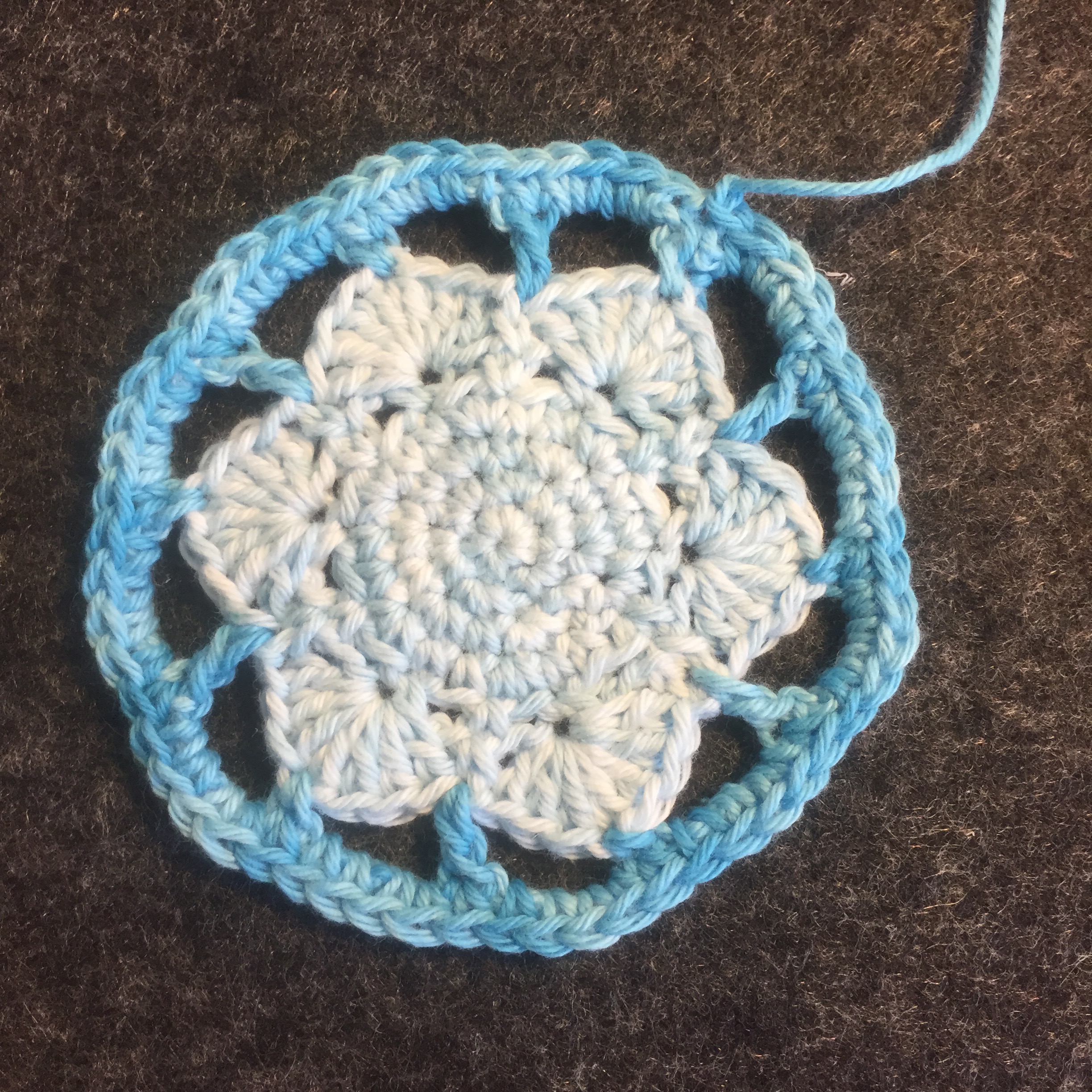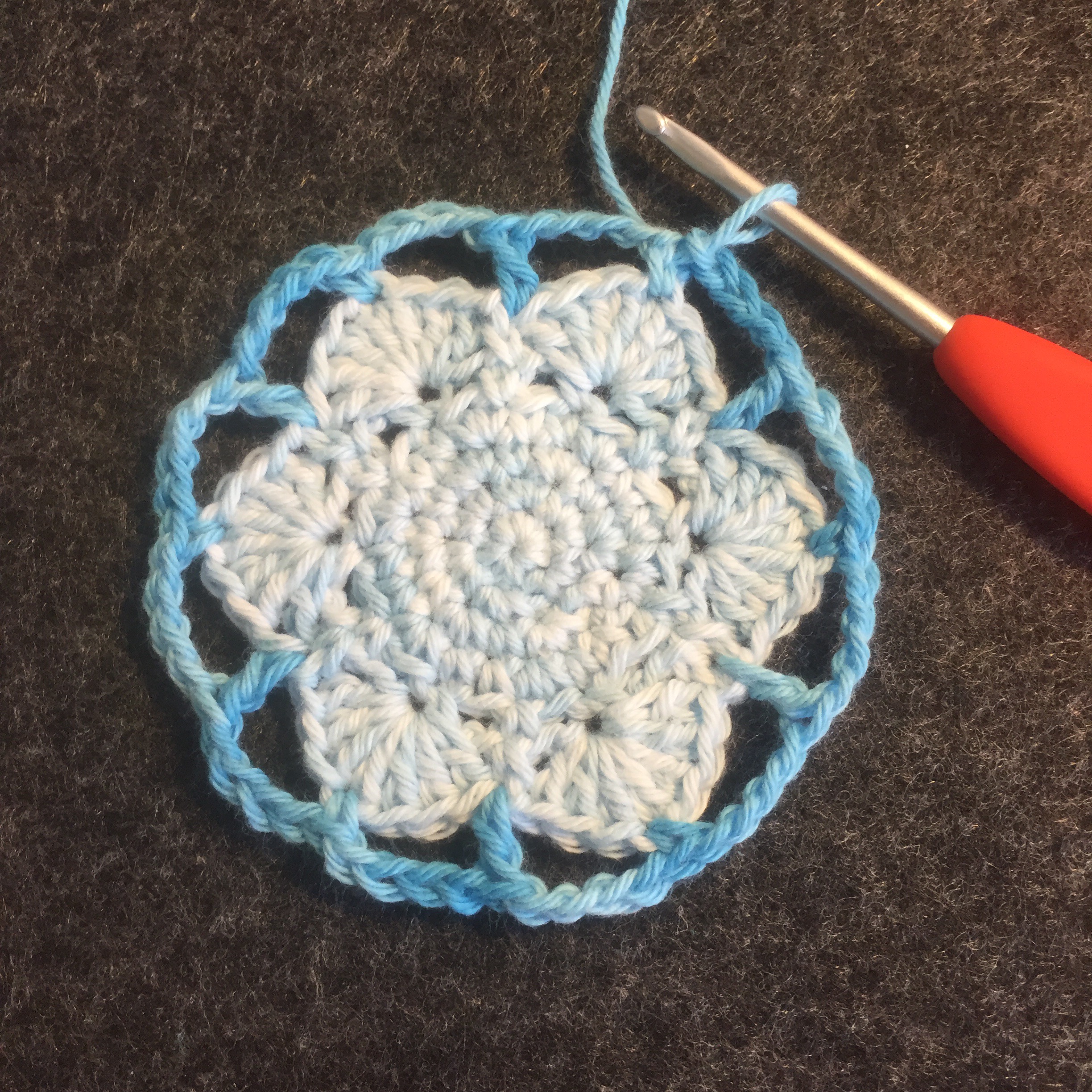 Work 2 separate rounds of surface crochet in the middle of the mandala.