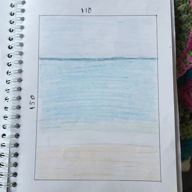 🇺🇸 I love the ocean and therefore wanted to create a blanket that can bring my thoughts there no matter of the weather or season. I started by drawing a sketch and test crochet the stitches I planed to use.