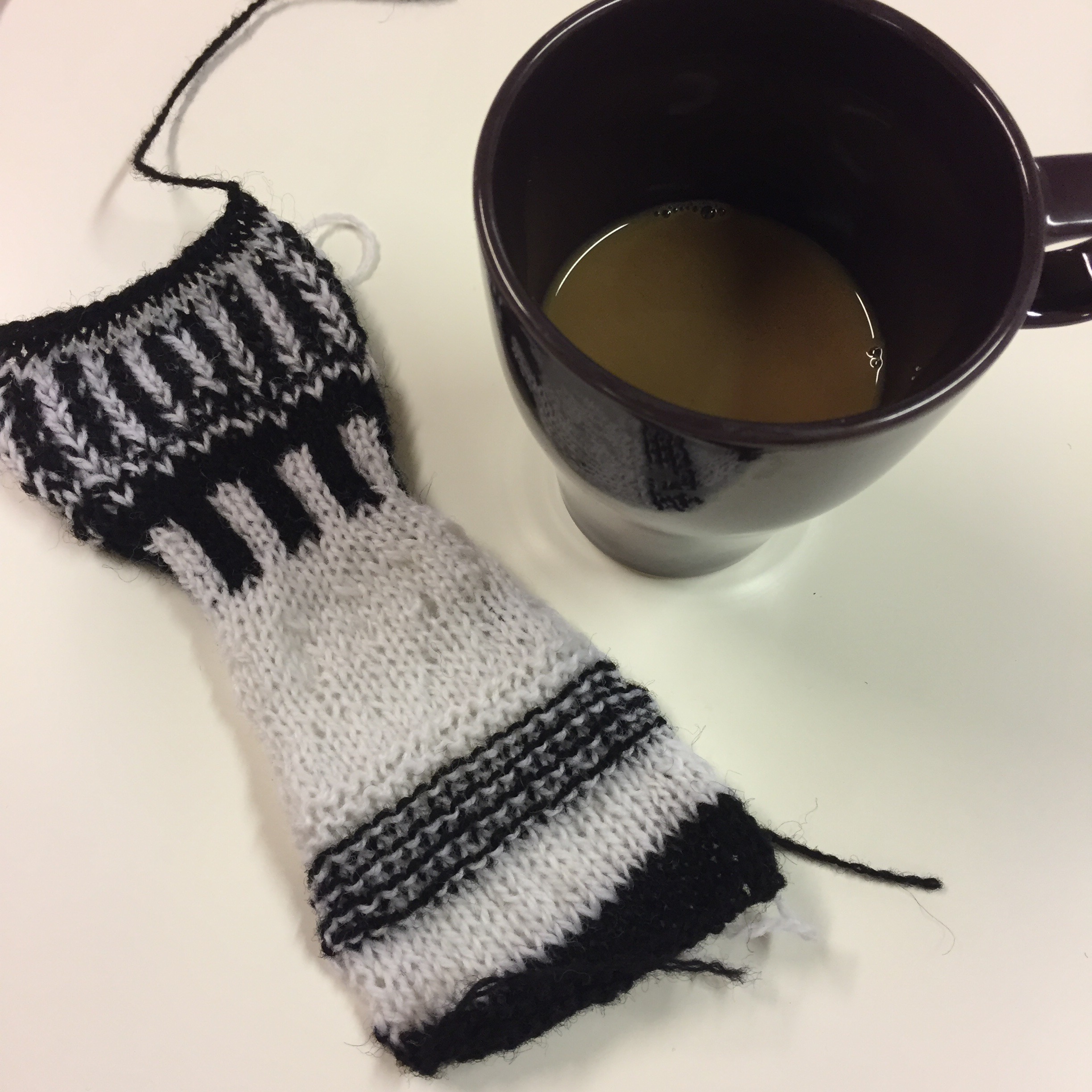 đșđž We’re working with strupes right now, Â and therefore we knit with two colours at the same time. This is a huge callenge for me since I need to focus on getting the stitches right and hold the yarn in a different way to when I crochet. But after som strugle I managed to create these test peices.