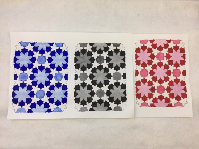 Here I’ve done the same thing by painting. This was one of my school assignments. I started to paint the blue version first, after that I changed into grayscale and in the last step I tried to recreate the same colour pattern in pink.