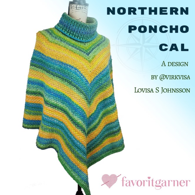 🇺🇸 During the fall I have been working on a secret project that I finaly have been able to show you – my first CAL! On friday October 27th the first part of Northern Poncho CAL will be released. This CAL is a bit different from favoritgarner’s earlier CALs in the sence that you will se how the finished product will look like even before it starts.