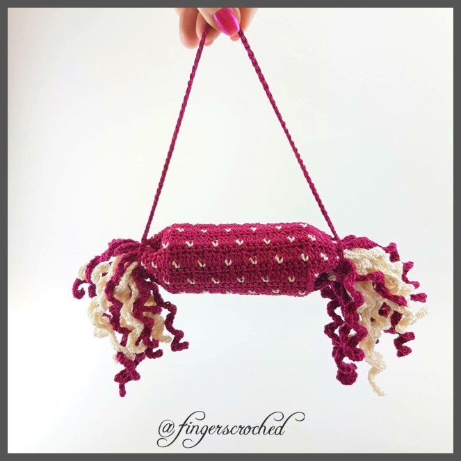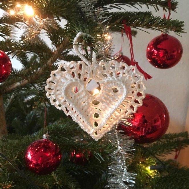 In my last post I showed you the things I have crocheted and knitted using the patterns from Stitchbloggers advent calendar. I have not had time to finish all of the patterns that have been hiding behind the doors. Luckily the patterns will stay available on our blogs and Lands website. You can find all the info about where to find the different patterns on stitchbloggers.com Today I want to show you all of the items that hid behind the doors that I didn’t get to. But first I want to show you the pine cone that was included in the yarn kit from favoritgarner.se